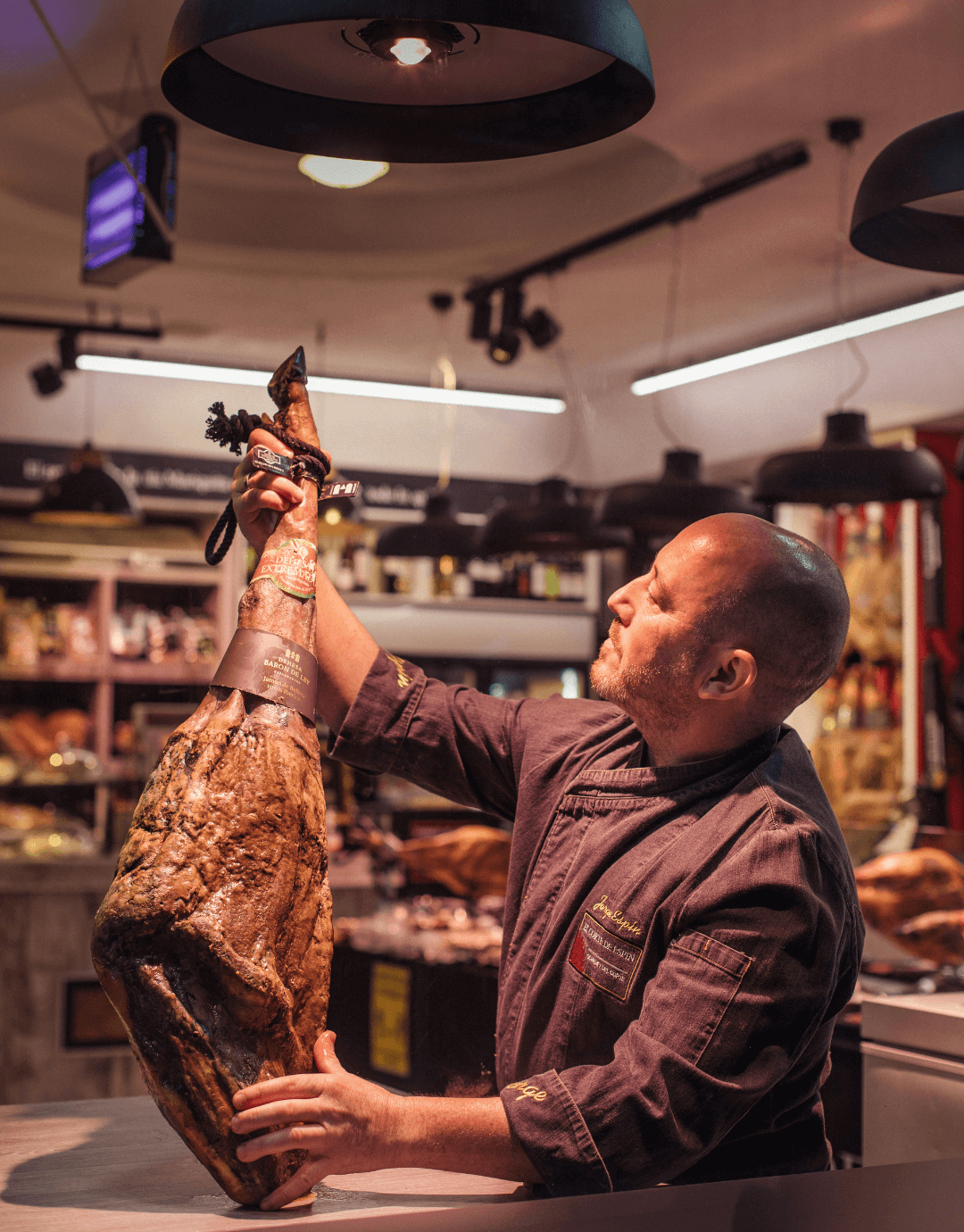 Jamón Ibérico afinado en bodega, Cortado a Cuchillo, Siempre recién cortado. Compartiendo excelencia en cada paquete que sale de nuestras manos, respetando el producto y el sabor inconfundible del ibérico bien hecho. Lo mejor, directo a tu casa.